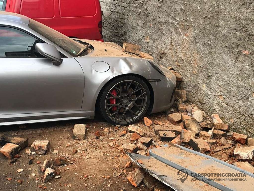 Jedan od onih koji su toga dana osjetili bijes prirode je i ovaj Porsche 911 najnovije generacije (992) na kojega se obrušilo dvadesetak cigli odvaljenih s obližnje zgrade.